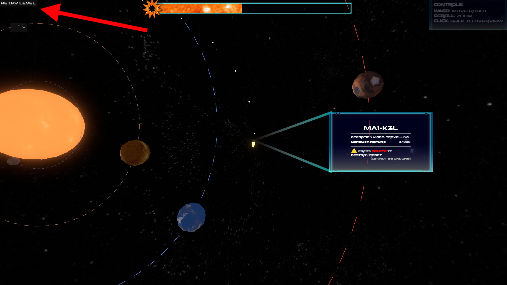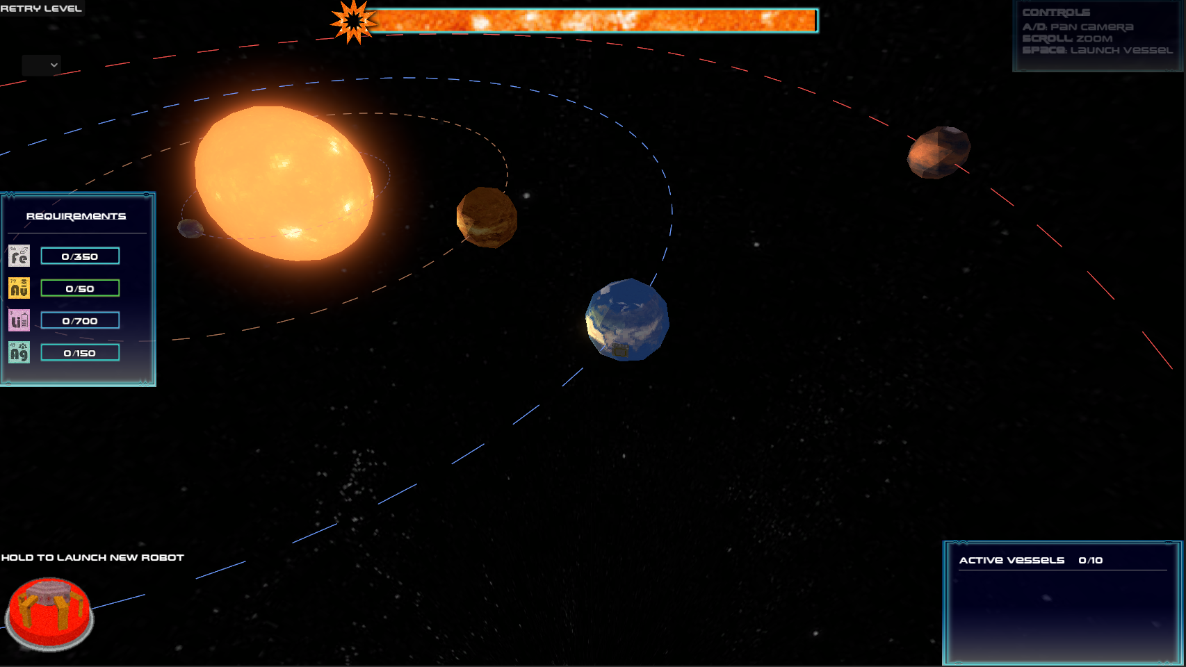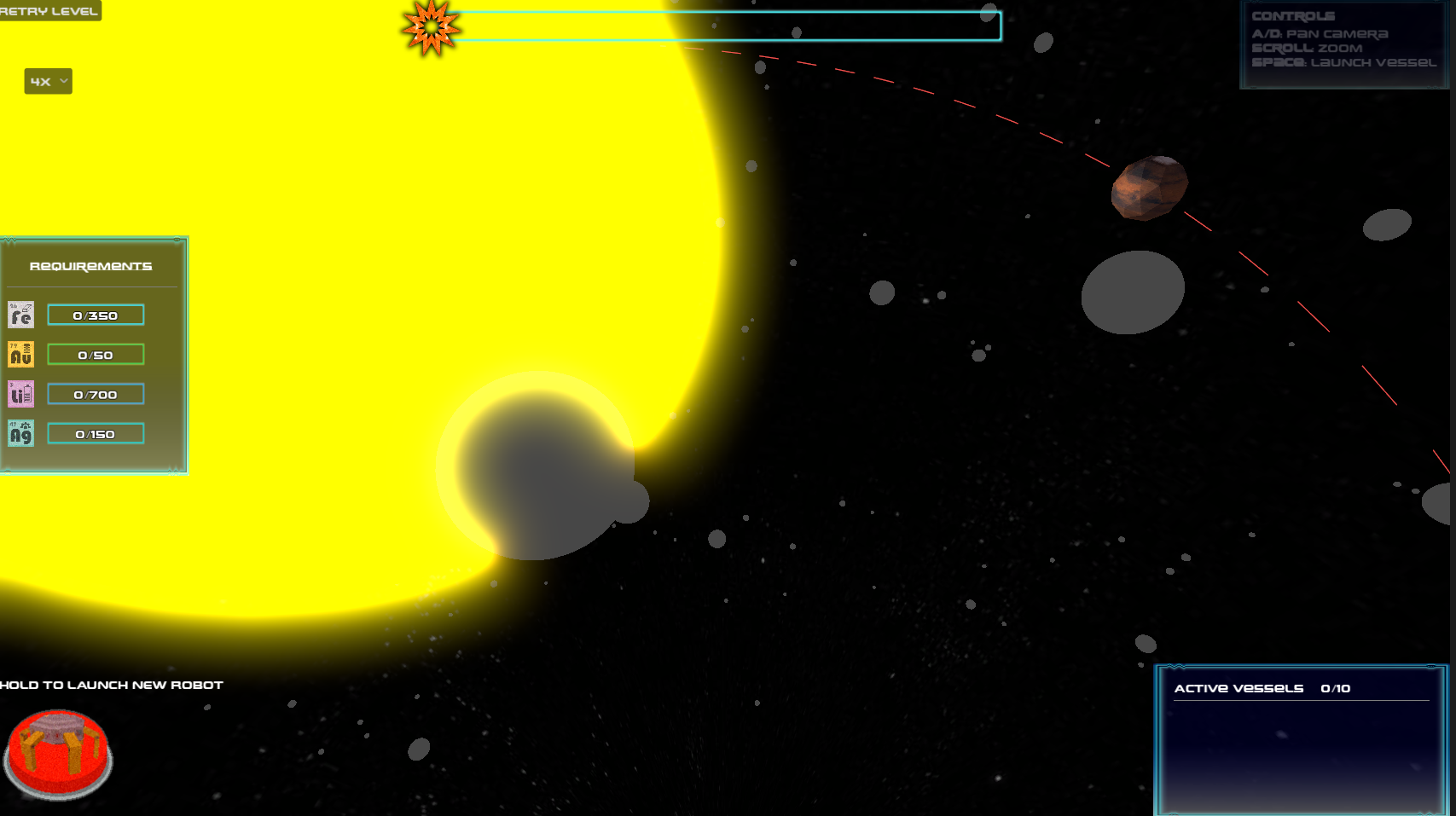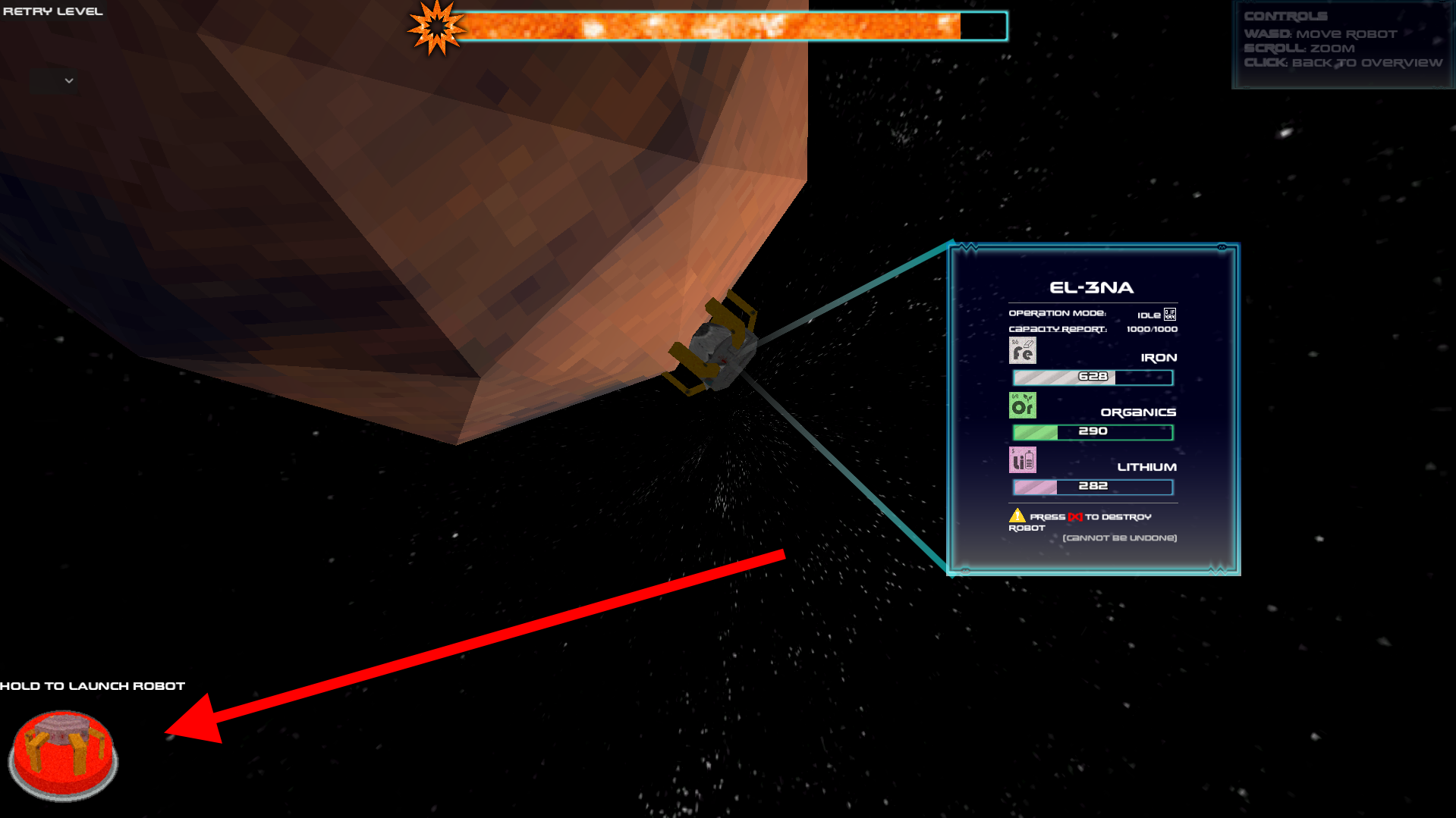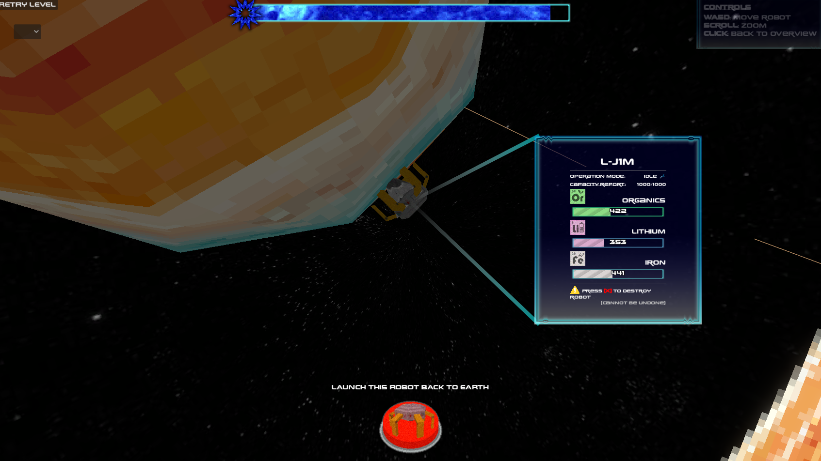 | Launch robot button | Launch a new robot from Earth Got all level requirements? Try clicking this button again. |